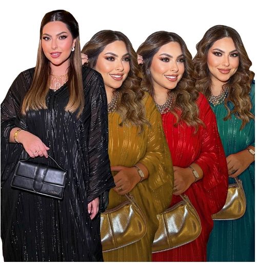 عباية نسائية على شكل فستان لامعه مكون من قطعتين رهيبه وفاخره مريحه في اللبس والملمس، تلبس في الأفراح والأعياد الكبيرة ومؤتمرات المال والأعمال