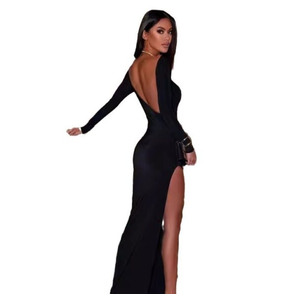 فستان سهرة نسائي للأنيقات بأكمام طويلة وفتحة ظهر مثير وجذاب وفاتن وعصري، يلبس في حفلات الأفراح ولدعوات المؤثرين سفراء النجاح
