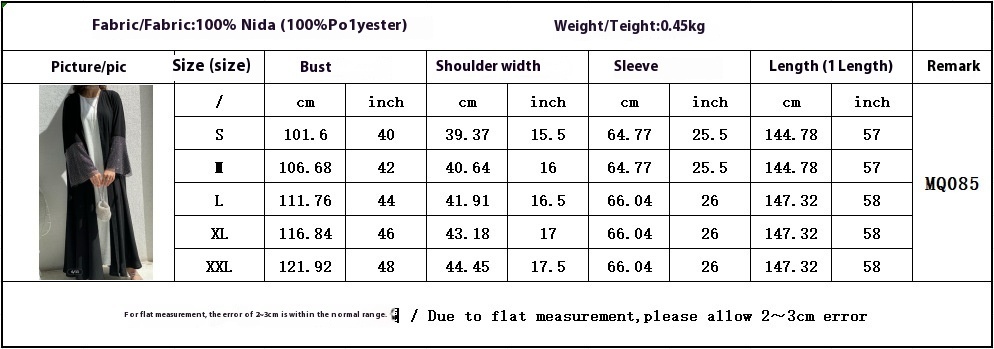 كن أول من يقيم “MQ085 Cardigan Abaya Muslim Cross-border Stretch Diamond Mesh Robe”