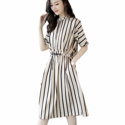 Slim Skirt With Vertical Stripes And Five-point Sleeve Slim Dress